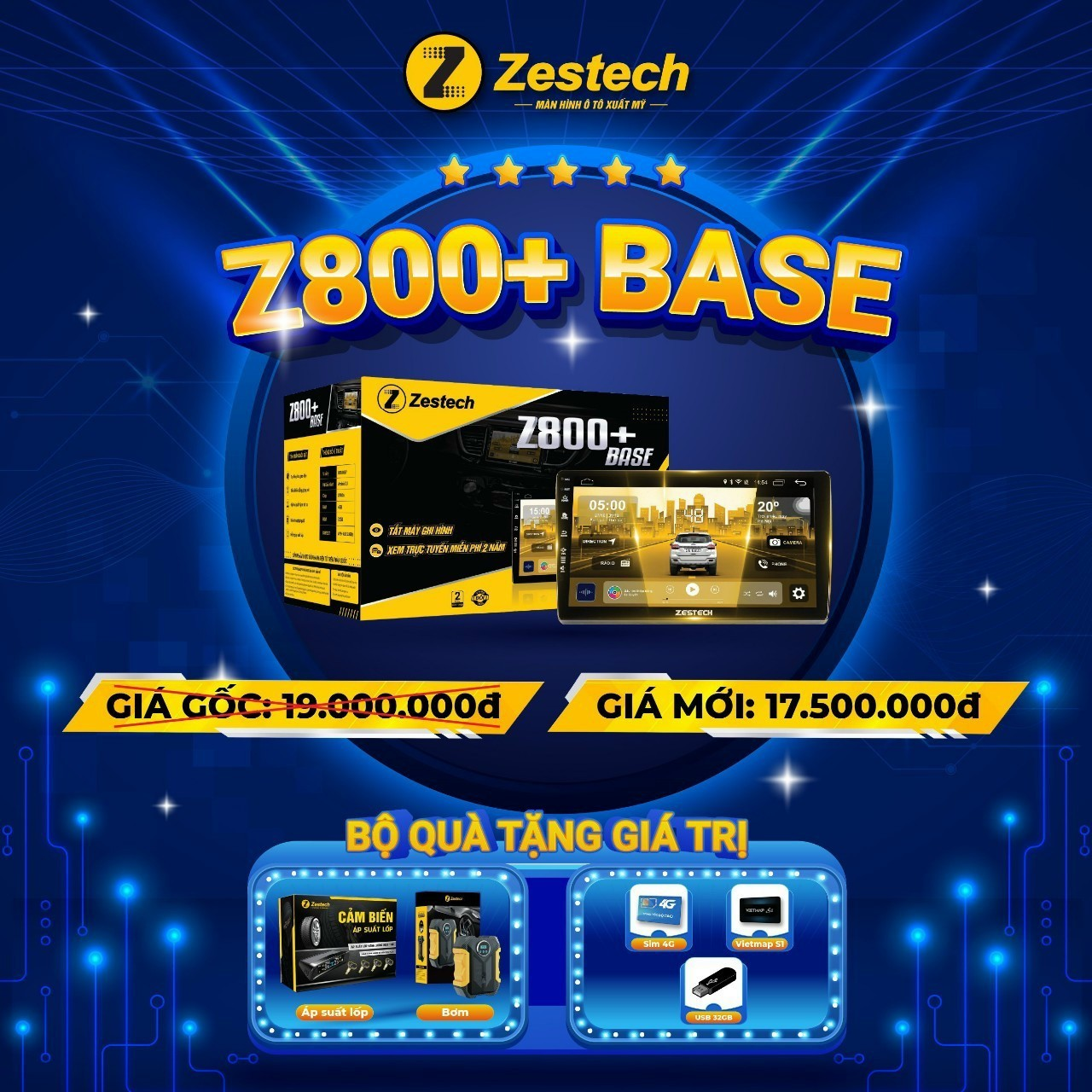 Tiếp tục gia hạn thời gian chương trình “MUA 1 ĐƯỢC 3 - THẢ GA QUÀ TẶNG”, khi mua Màn hình Zestech liền Camera 360, quý khách hàng sẽ được TẶNG NGAY 01 Cảm biến áp suất lốp + 01 Bơm lốp ô tô trị giá 4.500.000 VNĐ.